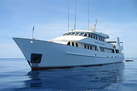 Spirit of Freedom is Australia’s most comfortable live aboard diving vessel offering the best dive cruising to the Great Barrier Reef and remote Coral Sea reefs out of Cairns in tropical north Queensland. During your dive trip you will be treated to first class chef prepared meals and complimentary wine with your evening meal after an amazing day of diving or snorkelling. There are three decks on Spirit of Freedom with a separate lounge, dining and under cover top deck providing plenty of space for up to 26 guests. The 11 generous air-conditioned cabins all containing private bathrooms make for a very comfortable live aboard diving adventure to the Great Barrier Reef.