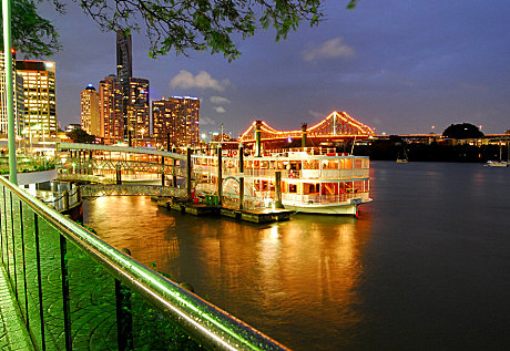 - Boarding and disembarking from the Lower Boardwalk at Eagle Street Pier, 1 Eagle Street, Brisbane. Boarding from 6.30pm for a prompt 7:00pm departure. Please check in at our booking office on the boardwalk level at Eagle Street Pier prior to boarding the vessel. Check-in is open from 2 hours prior to your departure time